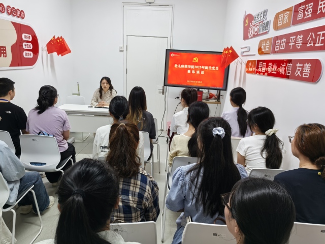 杨潇副书记对全体新生党员的加入表示热烈欢迎,并简要介绍了伟德BETVLCTOR1946学生党建工作的基本情况和近年来取得的成果。她向新生党员提出四点要求:一是筑牢政治意识,把稳思想之舵。要不断提高政治判断力、政治领悟力、政治执行力,自觉在思想上政治上行动上同党中央保持高度一致,坚决贯彻执行上级党组织的各项决策部署。二是强化规矩意识,恪守行为边界。要带头学习、严格遵守党章党规党纪和校规校纪,将外在的规则内化为日用而不觉的行为准则,知敬畏、存戒惧、守底线,使遵规守纪成为一种责任担当和行动自觉。第三是践行服务意识,发挥先锋作用。要牢记党的根本宗旨,将服务同学、服务学校、服务社会融入日常学习生活,主动亮身份、做表率,在实践实干中展现共产党员的先进性。四是弘扬奉献意识,彰显党性本色。要正确处理集体利益与个人利益的关系,在关键时刻和重大考验面前,能够挺身而出,乐于奉献,以实际行动诠释对党忠诚和敢于奉献的高尚品格。