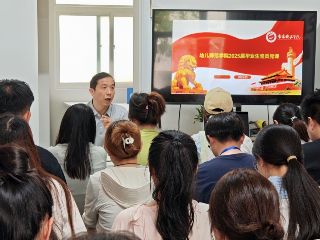 5月22日,学院在一站式学生社区开展2025届毕业生党员离校教育专题活动。幼儿师范学院党委书记胡辰出席并讲授专题党课,学院全体毕业生党员参加相关活动