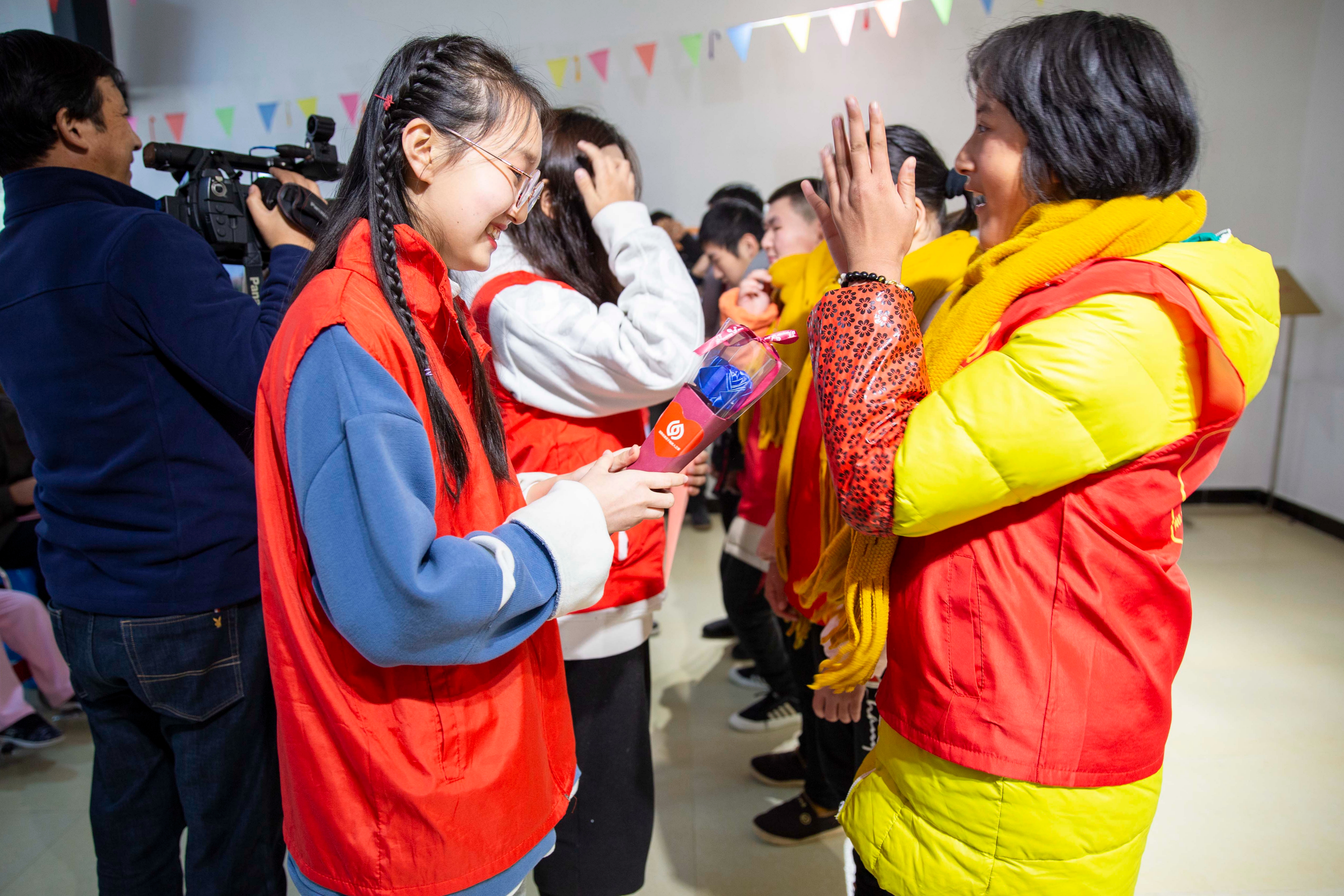 志愿者与残疾人朋友互换礼物