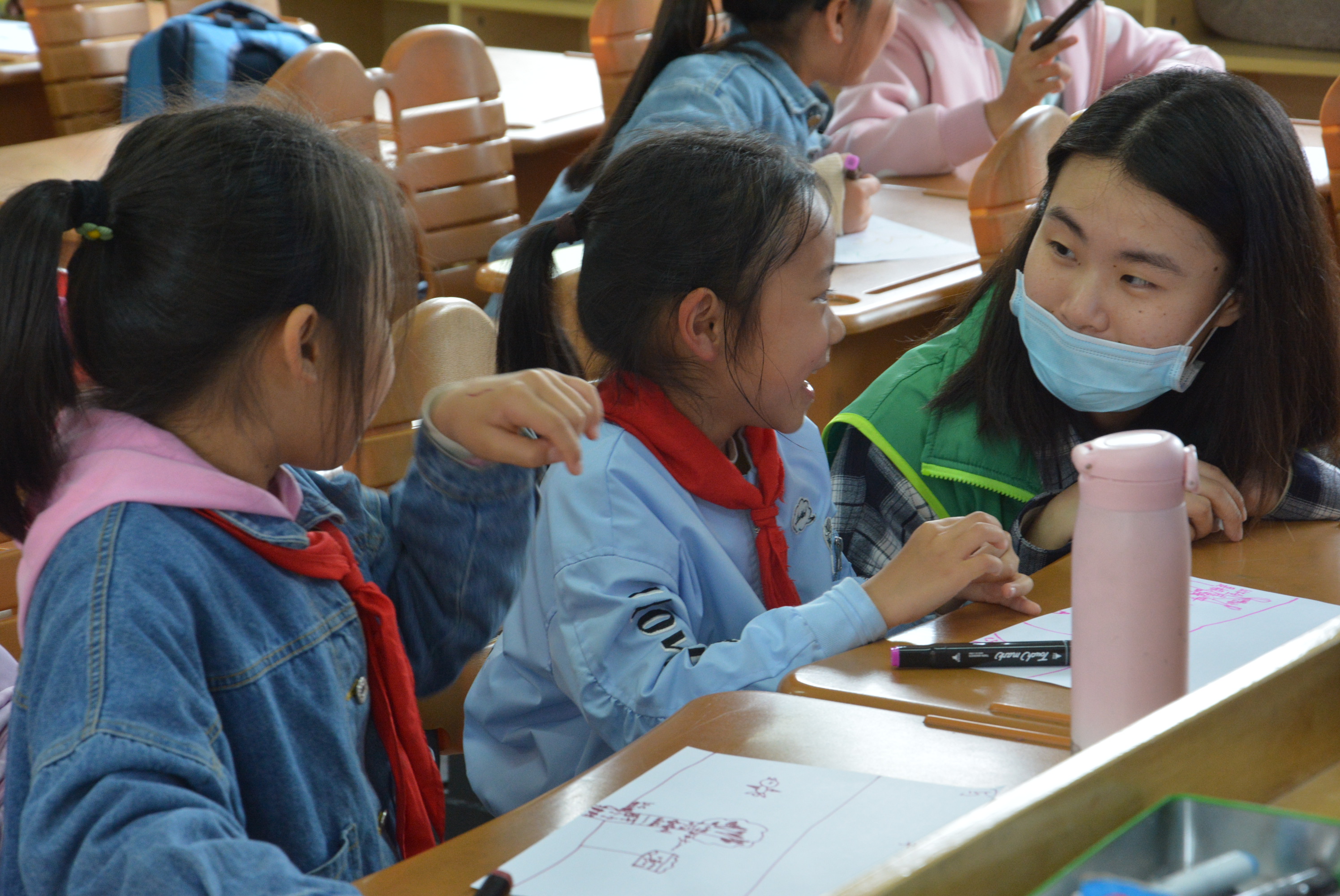 志愿者耐心回答小朋友的问题